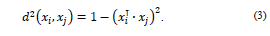 se define como la medida de similitud (la distancia) basada en la función seno de los vectores unitarios