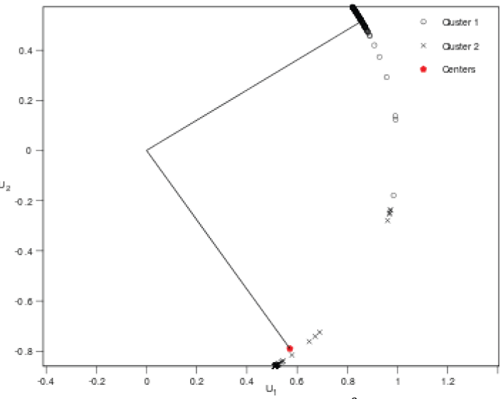 En este caso, se hizo mayores procedimientos de análisis debido a que el artículo con el que se está validando el funcionamiento del programa DiscontClust obtiene para los mismos datos: dos y tres posibles familias de agrupación; asimismo, los autores grafican los datos en el espacio transformado