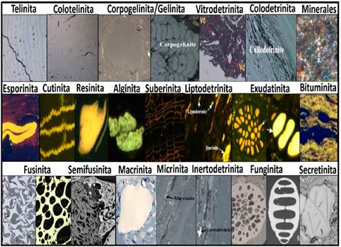 Figura 6: Comparación del origen de los tres principales tipos de Macerales y grupos Sub-Macerales