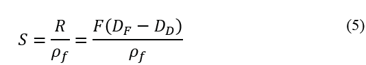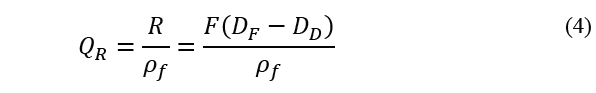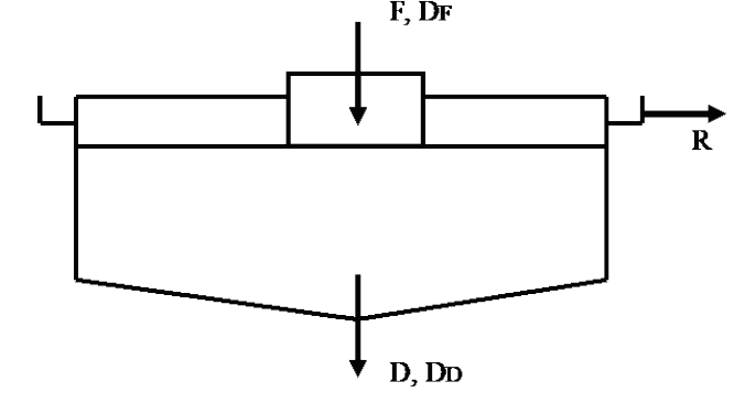 Uno de los métodos para el diseño de capacidad de espesadores fue propuesto por primera por Mishler [8], donde F y D son los flujos másicos de los sólidos de alimentación y descarga, respectivamente, R es el flujo másico de líquido en el rebalse y