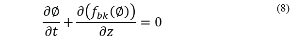 es función de las 3 coordenadas espaciales y el tiempo. Para un proceso de sedimentación de Kynch, obedece a la siguiente ecuación en las regiones donde son suaves: