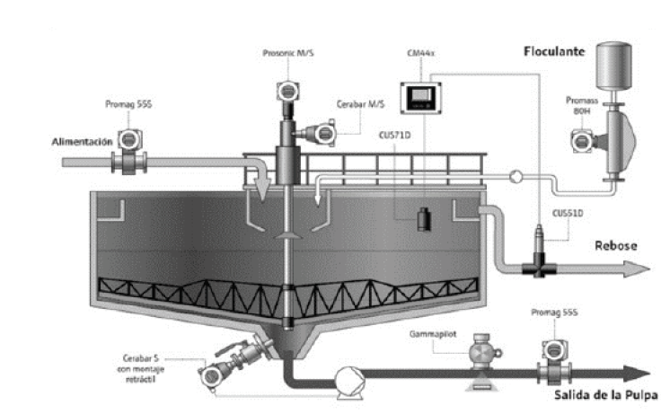 , luego se calcula la altura necesaria en el espesador para que la pulpa pase desde una concentración