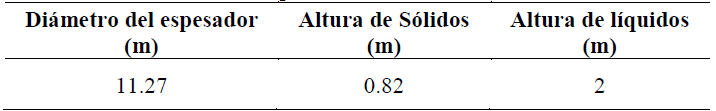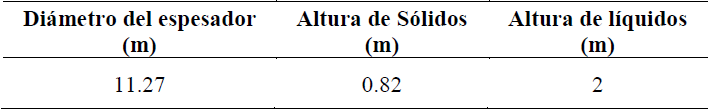 Tabla 2. : Dimensiones de diseño del espesador.
