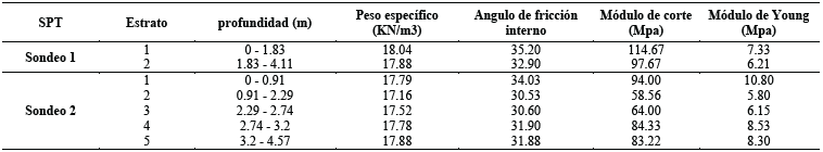 Del procesamiento de los datos adquiridos en campo con el SPT, (Ver Fig. 13), obtenemos parámetros estructurales fundamentales del suelo, mostrados en la Tabla 4, al igual que la profundidad máxima alcanzada.