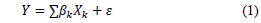 El modelo lineal, definido mediante la Ecuación 1, relaciona la variable dependiente Y con K variables explícitas X k (k = 1, …K), o cualquier transformación de éstas que generen un hiperplano de parámetros β k desconocidos: