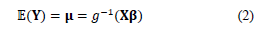 Los modelos lineales generalizados (GLM), son una generalización flexible de la regresión lineal ordinaria y que permite variables de respuesta que tienen modelos de distribución de errores distintos de una distribución normal, en este caso particular donde nuestra variable representa conteos, se propone un modelo Poisson (Harrell, 2001), tal como se evidencia en la Ecuación 2.
