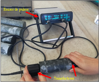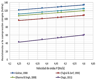 La velocidad de ondas P obtenida en el laboratorio representa un 70 % a 80 % de la velocidad teórica. Esta atenuación se debe, entre otras cosas, a la presencia de estructuras y/o discontinuidades en los núcleos, influyendo directamente en la aproximación de la resistencia a la compresión uniaxial (Tabla 8) y los índices de continuidad de la Tabla 5, los cuales están entre continuidad fuerte a continuidad media.