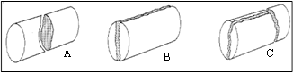 Rotura. Como se aprecia en la fotografía, los planos de falla generados por la carga aplicada presentan forma diagonal en la parte superior e inferior del núcleo. Estos planos corresponden a venillas de carbonatos (Fig. 35).