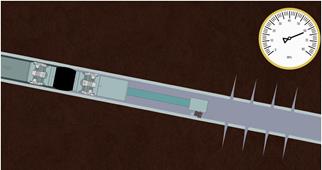Fracturing fluid was then pumped into the tubing string. The fluid filled the part of the casing below the packer and, because of the overpressure, process fractures were created in the payoff zone (Fig. 12).