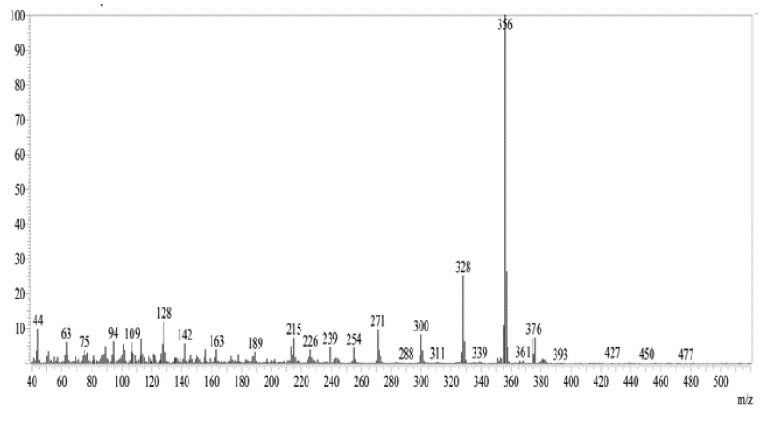 Figure 5 shows the mass spectrum of compound QMS-1. From mass fragmentation, the structures of synthesized compounds are confirmed.