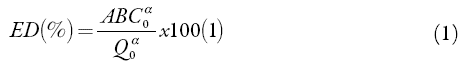Los datos obtenidos se organizaron utilizando el programa MS Excel 2010. Los análisis se realizaron empleando el programa estadístico GraphPad Prism Vesion 5.0, mediante pruebas t de Student y Anova, seguidas de la prueba de Tukey para comparaciones múltiples, según cada caso. Los perfiles de disolución de los productos de ibuprofeno en estudio se generaron al graficar la cantidad de fármaco disuelta vs. tiempo. A partir de la información proporcionada por las curvas, se evaluaron las áreas bajo la curva (ABC) y la eficiencia de la disolución (ED) para cada una de ellas, y así se realizaron las comparaciones [18]. La eficiencia de disolución (ED) se calculó desde los perfiles de disolución como la razón entre el área bajo la curva de disolución hasta el minuto 75, utilizando la regla trapezoidal y el área total del rectángulo que describe el 100% de la disolución a ese tiempo expresada en porcentaje, empleando la ecuación 1[19].