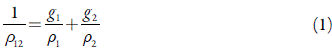 The density of solution (ρ 12) is related to densities of the solvent, solute and their weight fractions g1 and g2 according to the equation: