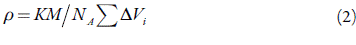 Here ρ indicates the density of the compound, K is packing fraction which is equal to 0.599 for organic compounds, M is for molecular weight of the compound, N a is the Avogadro's number and ∆ V i is the volume increment of the atoms and atomic groups present in the compound. The density of all the studied compounds have been evaluated and reported in Table 5.