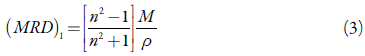 Further, the molar refraction of a pure liquid (MRD)1 can be calculated using the Lorentz-Lorenz equation [33]: