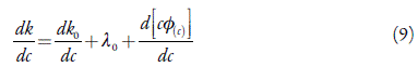 The limiting conductivity can be evaluated accurately from the limiting slope of smaller linear portions of the curve of k versus c, provided other derivatives (dk 0 /dc) and d[c ΦI]/dc in differential form of equation (8) are neglected as compared to A0, which can be determined from differential form of equation (8) is: