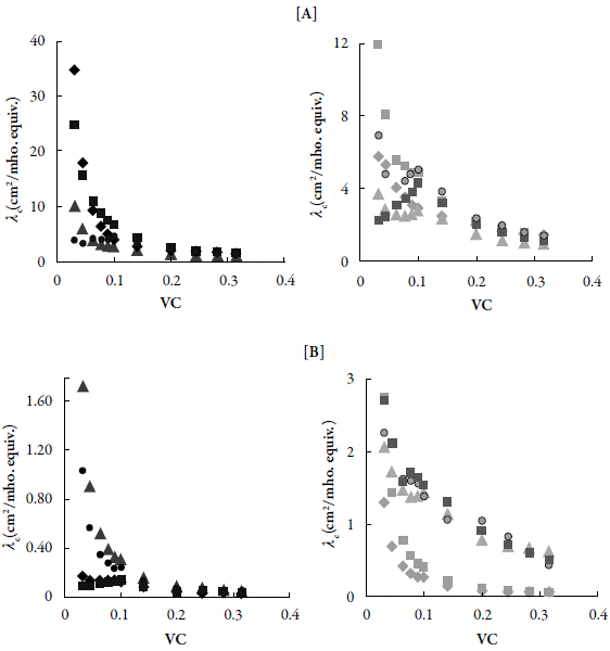 So for few compounds, λ0 value can be evaluated by extrapolation of plot of λ c versus √C. However, for the solutions where λ C decreases at low concentrations, A0 could not be weak electrolytes, it is difficult to determine λ0. There is an alternate procedure also to determine λ0 using the following equation [34]: