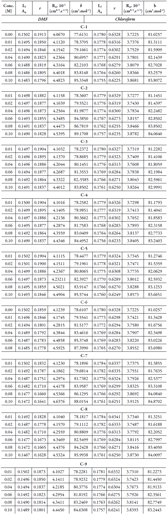 Table 3: Some acoustical parameters of synthesized compounds in DMF and chloroform.