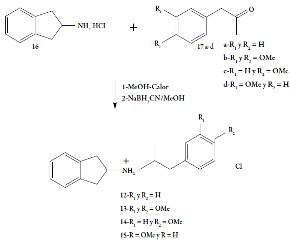 Síntesis de los análogos clorhidratos del2-aminoindano-N-[2-(mono o dimetoxi)-fenil)-1-metil-etil] 12-15