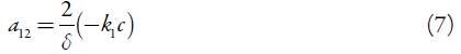 em que Δ e D são coeficientes de difusão dos derivados do ácido gálico e da substância interferente, g0 e s0 são as suas concentrações no interior da solução e os parâmetros r são as velocidades das respectivas reações, que se podem calcular conforme: