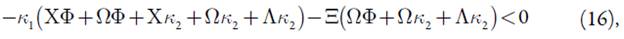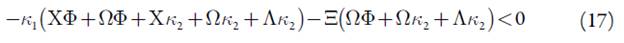 A fim de investigar a estabilidade do estado estacionário, aplicamos o critério de Routh -Hurwitz. Simplificando o determinante da matriz, introduzimos as novas variáveis, de modo que este se descreve como: