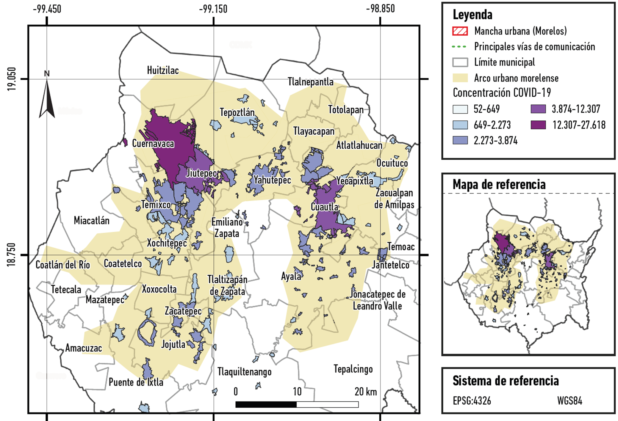 El estudio se desarrolló a partir de preguntarse por la relación territorial que existe entre los corredores urbanos que se identifican en el estado de Morelos -como expresión de la construcción de un sistema articulado de ciudades neoliberales- y la concentración del acumulado de casos confirmados de COVID-19. Esta pregunta se fundamenta en la necesidad de esclarecer si el tipo de ciudad que se deriva del espacio urbano construido en la entidad de estudio puede considerarse como condición espacial para la distribución geográfica de enfermedades, como la derivada de la patogénesis causada por la infección por Sars-Cov-2.