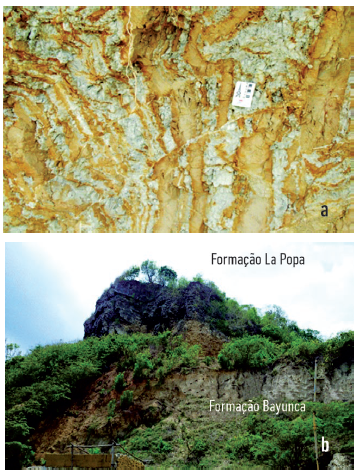 Figura 2: a) Formação Tubará, b) Formação La Popa, que se sobrepõe à Formação Bayunca de forma discordante.