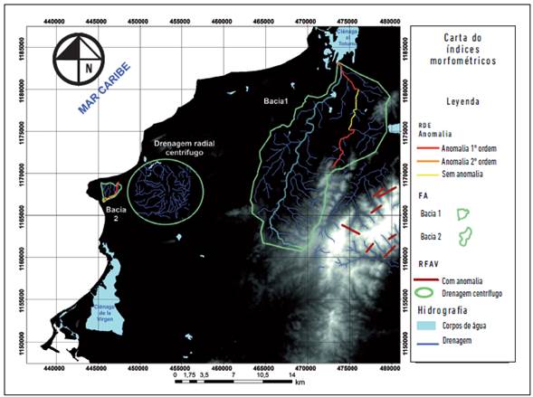 A intensidade dos valores obtidos com a aplicação do índice RFAV baseou-se em observações feitas por Silva, Schulz e Camargo (2003), que sugerem que os valores de RFAV menores que 1 são indicadores de tectônica ativa, e os maiores que 1, indicadores de estabilidade tectônica.