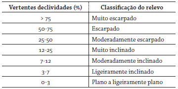 Tabela 1: Classificação do relevo baseado na declividade das vertentes