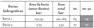 Tabela 6: Valores obtidos com a aplicação do índice FA nas bacias estudadas