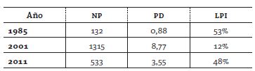 Nota: NP número de parches; PD densidad de parches (número de parches/km2); LPI Large Patch Index.