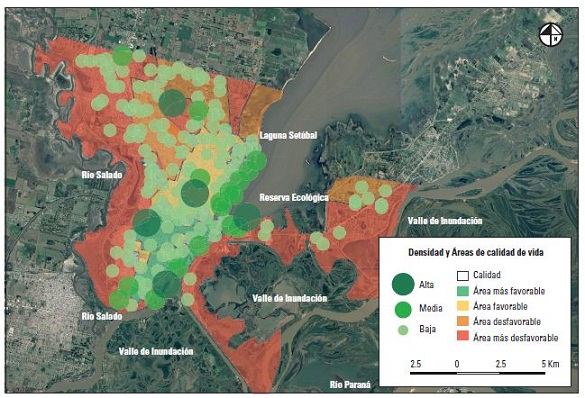 Figura 4: Municipio de Santa Fe: áreas de calidad de vida y densidad de EVP.