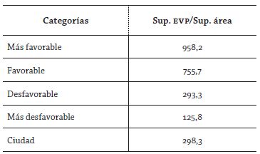 Tabla 5: Municipio de Santa Fe: densidad de EVP según áreas de calidad de vida (m2/ha)