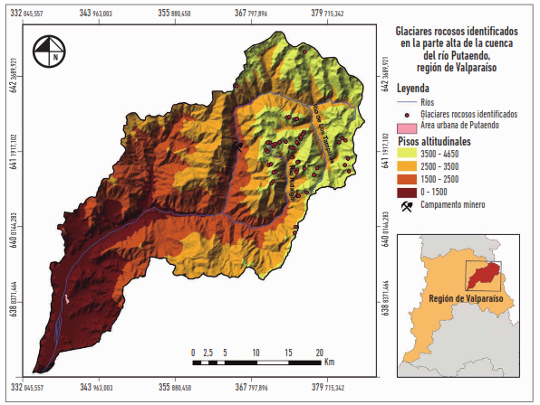 The rocky glaciers located in the semi-arid zone of Chile are a major water resource that is currently exposed to a considerable destructive impact due to both global climate change and the continuing expansion of mining activities in high mountain regions. This article analyses the current situation of the Putaendo River valley, Aconcagua River basin, in the region of Valparaíso, where mining projects coincide spatially with unidentified and unstudied rocky glaciers. It also reviews the way the Chilean Constitution approaches to glaciers. In this context, the prevailing neoliberal policies and an unclear, fragmented and environmentally weak body of regulations have allowed the uncontrolled intervention of the cryosphere in the central Chilean Andes, whose population has been exposed to severe droughts in the last decades.