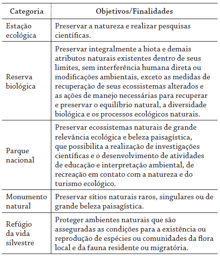 Tabela 3: Categorias e objetivos das Unidades de Conservação de Proteção Integral