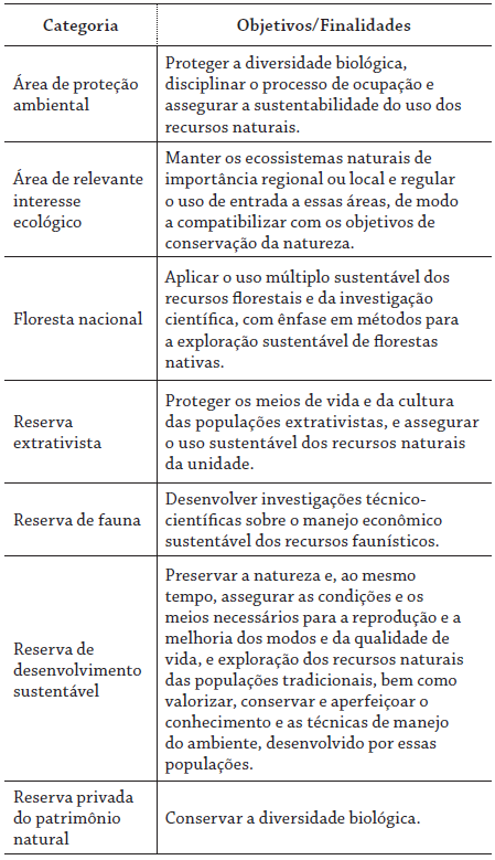 Tabela 4: Categorias e objetivos das Unidades de Conservação de Uso Sustentável