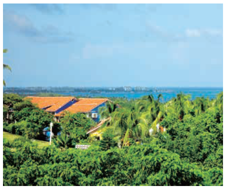 Con el fin de comprender la percepción actual del paisaje en la isla, la siguiente sección presentará los resultados del análisis de las entrevistas llevadas a cabo con ayuda de los pobladores raizales a partir de las políticas de colombianización. Estas entrevistas permiten entender en mayor detalle la disonancia o yuxtaposición entre las percepciones de los pobladores raizales y las expectativas de las políticas públicas de turismo. De este modo, y para finalizar esta sección, vale la pena presentar un ejemplo visual de dicha yuxtaposición de paisajes y percepciones (cognitiva, utilitaria y emocional) en la vista que provee la colina de Harmony Hall Hill sobre la isla (figura 3). En primer plano, un hotel de formato campestre que aprovecha la percepción emocional turística de remanso. Posteriormente, una serie de pequeños y segmentados terrenos de pan coger con una fuerte percepción utilitaria para los pobladores locales. Por último, al fondo, prepondera el paisaje de turismo de lujo en los hoteles de gran tamaño del centro y la barrera de coral, punto clave del pasaje laboral tradicional de los pescadores locales.