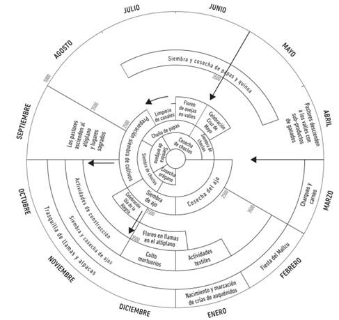 Figura 4: Calendario de faenas agrícolas-pastoriles de las comunidades indígenas andinas de la región de Tarapacá, desierto de Atacama, norte de Chile.