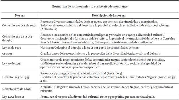 Tabla 1: Normas de Reconocimiento étnico afrodescendiente en Colombia