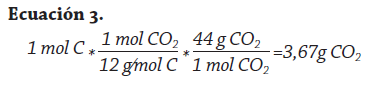 Ahora, para determinar la cantidad de CO2 liberado, se aplica el factor de conversión de carbono a dióxido de carbono (aplicando la ecuación 3):