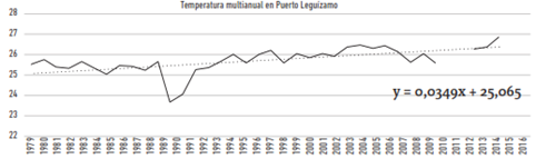 Figura 9: Cambio en la tendencia normal de la temperatura en Puerto Leguízamo.