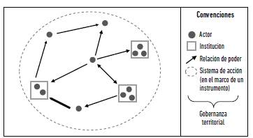 Actores, sistema de acción, poder, instituciones, instrumentos, gobernanza territorial y periurbano