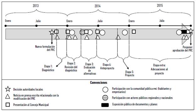 Figura 3: Trayectoria temporal de la modificación del Plan Regulador Comunal de Melipilla (2013-2015).