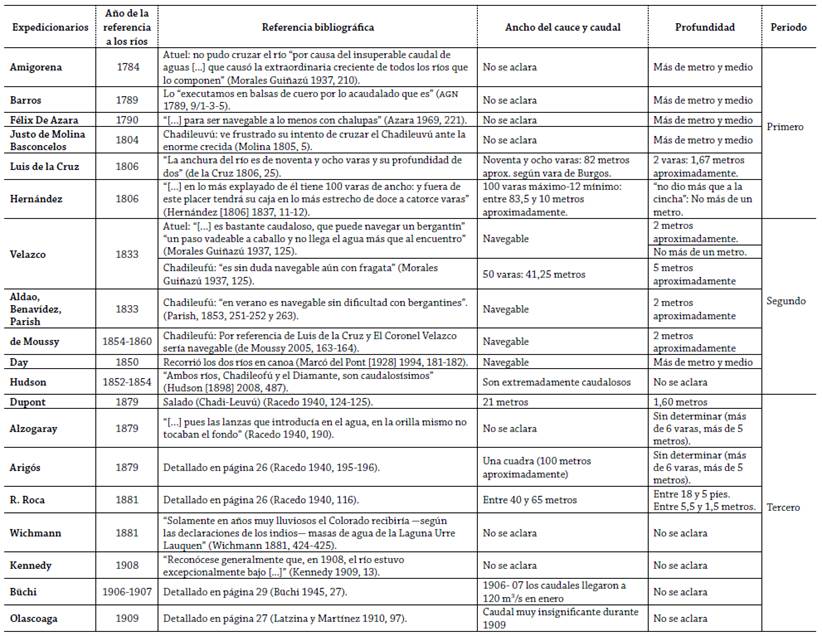 Otro militar, Hilario Alzogaray, afirmaba en el mismo diario de operaciones que "pues el Chadi-Leuvú nos impedía el transito [...] lo sondeé en varias partes y me convencí que solo a nado podía vadearse, pues las lanzas que introducía en el agua, en la orilla mismo no tocaban el fondo" (Racedo 1940, 190).13