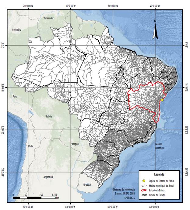 Sobre uma extensão territorial de 8.515.759,090 km2 estão distribuídos, desigualmente, 5.570 municípios e uma população estimada de 208.494.900 habitantes, conforme o Instituto Brasileiro de Geografia e Estatística (IBGE 2018). São municípios bastante heterogêneos em termos de extensão territorial, de formação histórica, de tamanho populacional e de características naturais, sociais e económicas. Conforme à Figura 1, as menores malhas municipais estão localizadas ao leste do território brasileiro, onde o processo de urbanização é mais acentuado, enquanto as maiores malhas estão localizadas, predominantemente, nas regiões Centro-Oeste e Norte. Um exemplo disso é o Município de Altamira, localizado no Estado do Pará (Região Norte), cuja malha municipal de 160.755 km2 é superior à soma dos territórios de países como Dinamarca (43.094 km2), Suíça (41.284 km2), Bélgica (30.519 km2) e Estónia (45.100 km2).