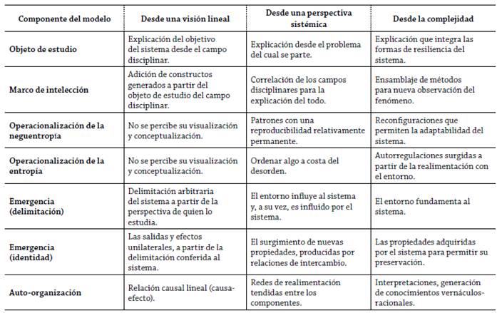 Por último, deberá entenderse que cualquier modelo explicativo parte de un paradigma que responde a intereses específicos y que se legitima en la aceptación de la comunidad científica, por la explicación coherente que proporciona sobre el fenómeno de estudio. Esta perspectiva del observador es la primera condicionante en la configuración del constructo; pues implica la articulación de componentes desde un campo referencial propio que le hace percibir de tal o cual manera. Lo anterior tiene implicaciones no solo para el sistema, sino para la propia construcción del modelo que estudia al sistema.