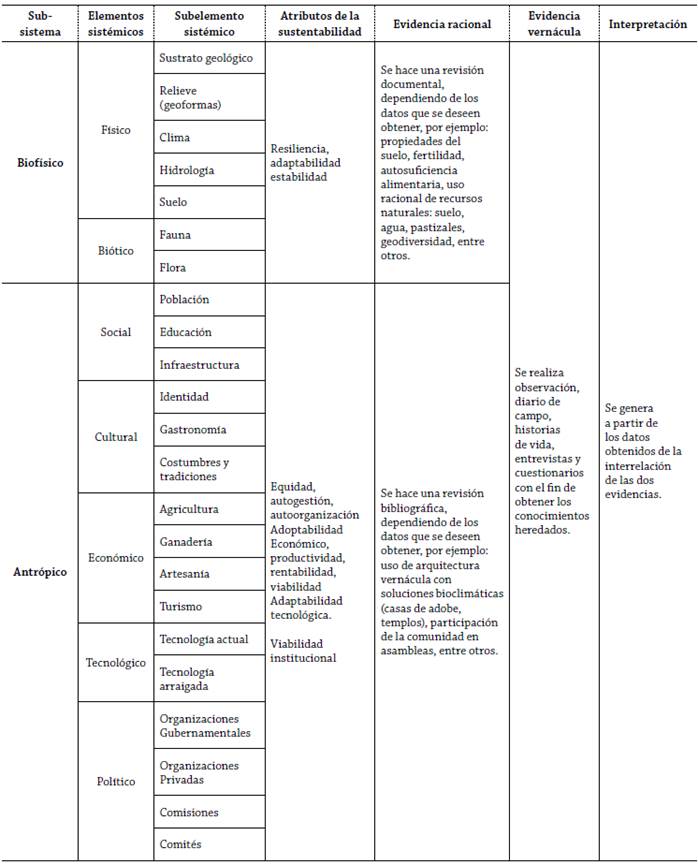 Para analizar los subsistemas, estos se fragmentan en subelementos del sistema, los cuales son examinados a partir de los conocimientos racionales. Todo aquello producto de investigaciones rigurosas, grupos de científicos, resultados de proyectos objetivos (Leff 2008), entre otros; y a partir de los conocimientos vernáculos, producto de una transmisión generacional, basados en el respeto a la naturaleza y su valorización (Quilaqueo y Quintriqueo 2007).
