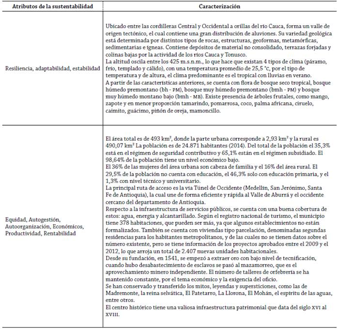En la Tabla 5 se muestra la caracterización detallada de Santa Fe de Antioquia, dicha caracterización se realizó basándose en los atributos de la sustentabilidad.