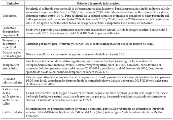 Tabla 1: Variables consideradas para el cálculo de la calidad climática urbana
