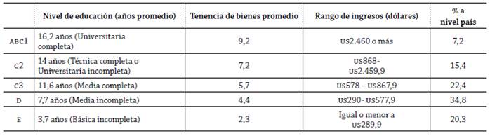 Fuente: Adimark (2003). Nota: el valor promedio del dólar para 2003 fue de 691,4 pesos chilenos de acuerdo con las cifras publicadas por el Servicio de Impuestos Internos (SII).