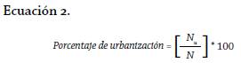 Después, considerando la clara importancia de las condiciones generadas por el modo de vida urbano y la necesidad de analizar y comparar el aislamiento de comunas con características semejantes, estas son agrupadas a partir de su porcentaje de urbanización, calculado según la fórmula propuesta por González (2009) (Ecuación 2).